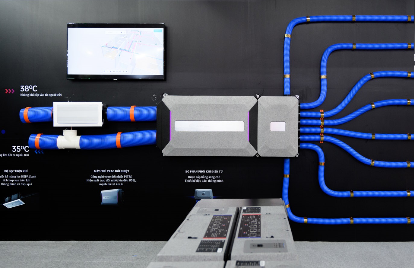 Hệ thống cấp gió tươi giúp cung cấp không khí mới và loại bỏ các chất ô nhiễm trong không khí bên trong căn hộ, như bụi bẩn, mầm bệnh, và hóa chất độc hại.