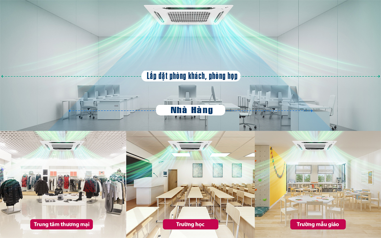 Trên đây là một số nơi phổ biến mà điều hòa âm trần cassette thường được lắp đặt. Với tính linh hoạt, hiệu suất cao và thiết kế tinh tế, các đơn vị này đang trở thành lựa chọn ưa thích cho nhiều loại hình không gian khác nhau, từ văn phòng đến khách sạn và cơ sở y tế.