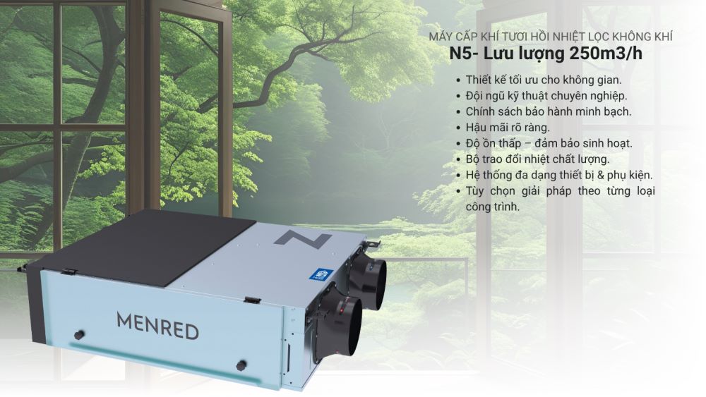Máy N5.250m3/h được Tân Phương Vina phân phối và lắp đặt không chỉ là một sản phẩm cấp khí tươi đơn thuần, mà là hệ thống cung cấp giải pháp toàn diện về lọc không khí, cấp khí tươi và thu hồi nhiệt. Với lưu lượng 250m3/h tương đương với những ngôi nhà có diện tích từ 50-80m2. Đối với tất cả sản phẩm của Tân Phương Vina phân phối lắp đặt đều giúp tiết kiệm năng lượng, cải thiện chất lượng không khí, và bảo vệ sức khỏe.