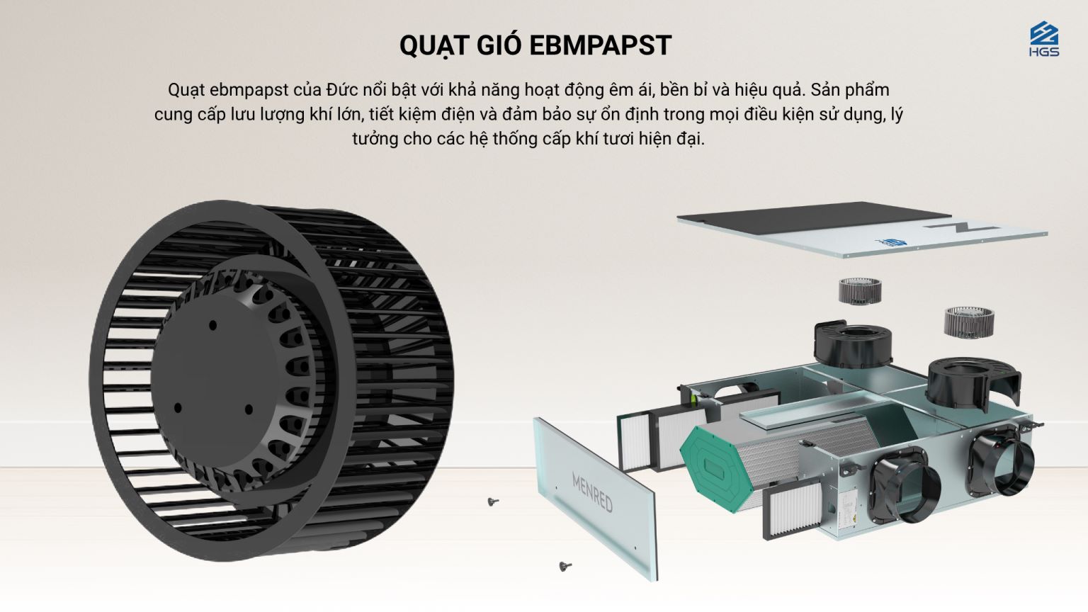 Công nghệ thu hồi nhiệt ERV kết hợp với quạt gió ebmpapst giúp hệ thống cấp khí tươi của bạn tiết kiệm năng lượng hiệu quả. Máy sẽ tận dụng năng lượng từ khí thải để làm mát hoặc làm ấm không khí tươi vào, từ đó giúp giảm tải cho các hệ thống điều hòa và máy sưởi. Điều này đồng nghĩa với việc bạn sẽ giảm chi phí vận hành của các thiết bị điện trong nhà, đồng thời tiết kiệm điện năng một cách tối ưu mà vẫn duy trì một môi trường sống thoải mái, ổn định.