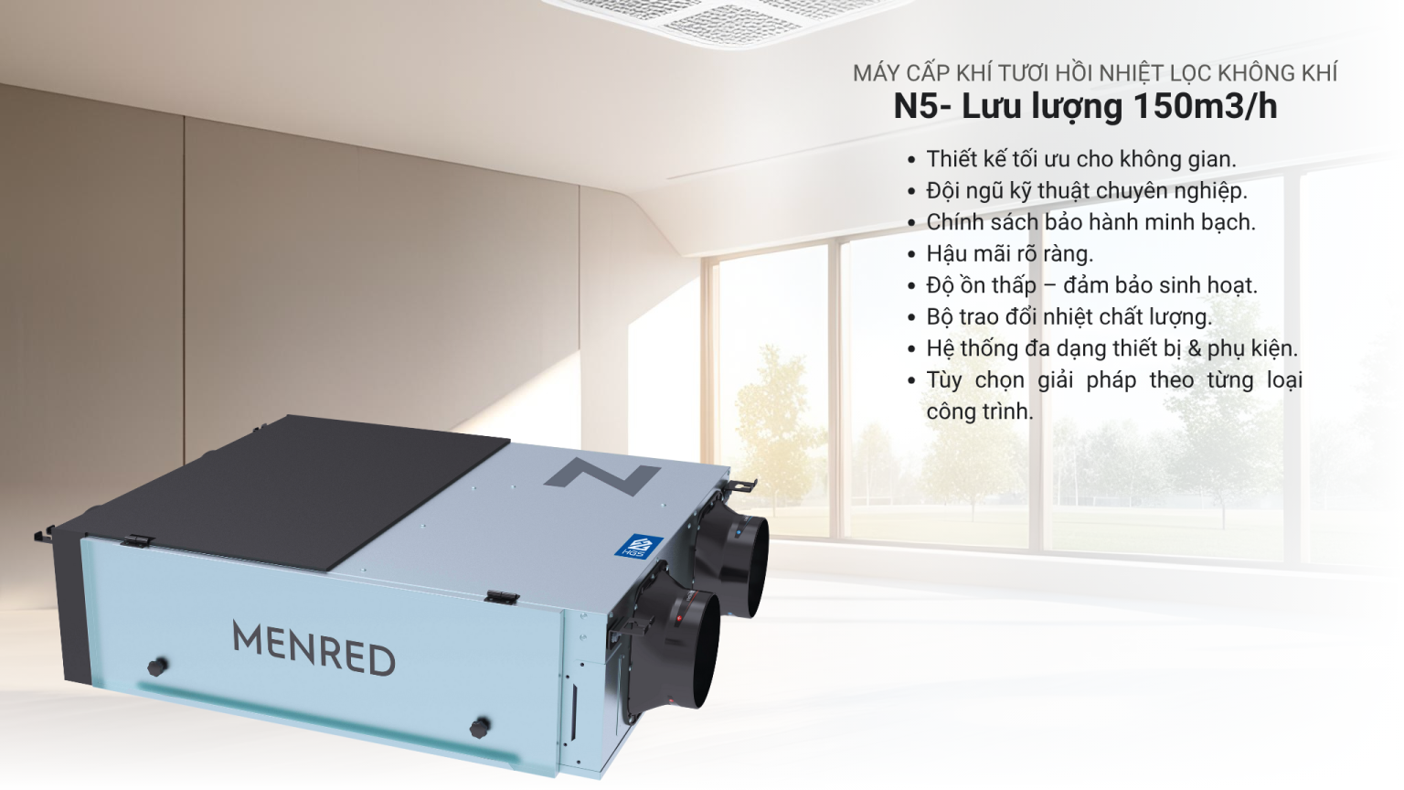 Máy N5.150 được Tân Phương Vina phân phối và lắp đặt không chỉ là một sản phẩm cấp khí tươi đơn thuần, mà là hệ thống cung cấp giải pháp toàn diện về lọc không khí, cấp khí tươi và thu hồi nhiệt. Với lưu lượng 150m3/h tương đương với những ngôi nhà có diện tích từ 40-50m2. Đối với tất cả sản phẩm của Tân Phương Vina phân phối lắp đặt đều giúp tiết kiệm năng lượng, cải thiện chất lượng không khí, và bảo vệ sức khỏe.
