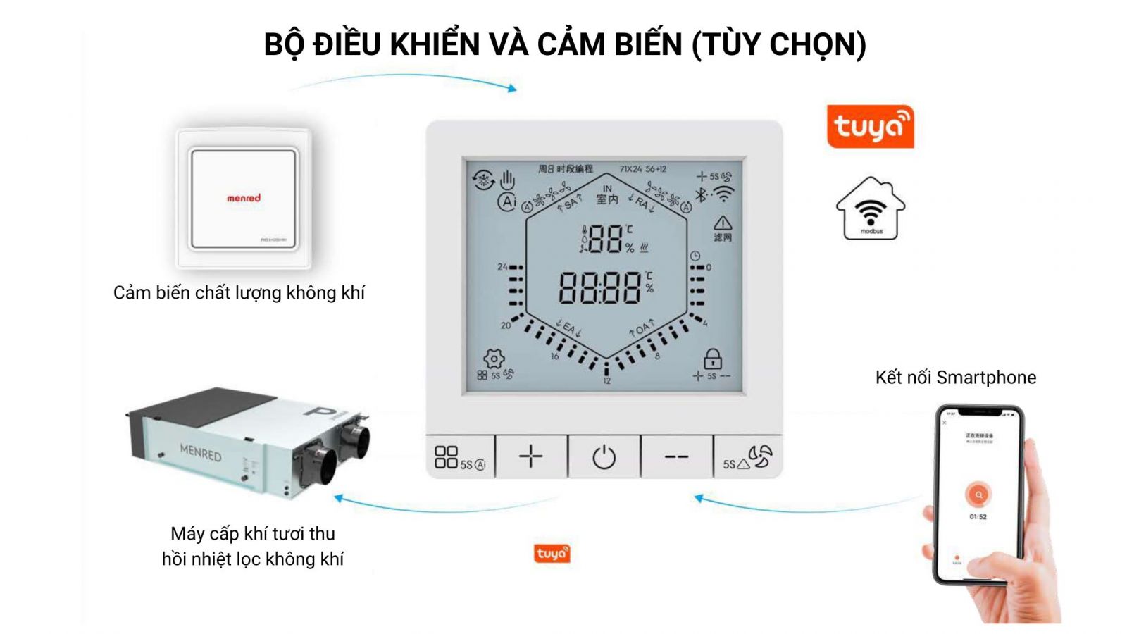 Bộ điều khiển và cảm biến tuỳ chọn của máy cấp khí tươi hồi nhiệt N5 lưu lượng 150m3/h.
