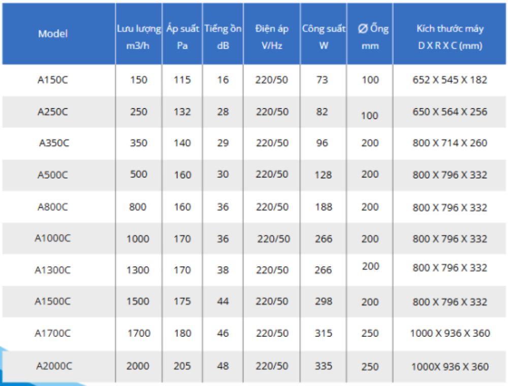 1000–2000 m³/h Biệt thự lớn, văn phòng, trung tâm đào tạo