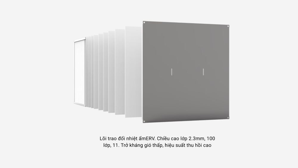 Công nghệ thu hồi nhiệt ERV kết hợp quạt gió cao cấp ebmpapst giúp hệ thống tận dụng nhiệt từ khí thải để làm mát hoặc làm ấm nguồn khí tươi đi vào. Nhờ đó: